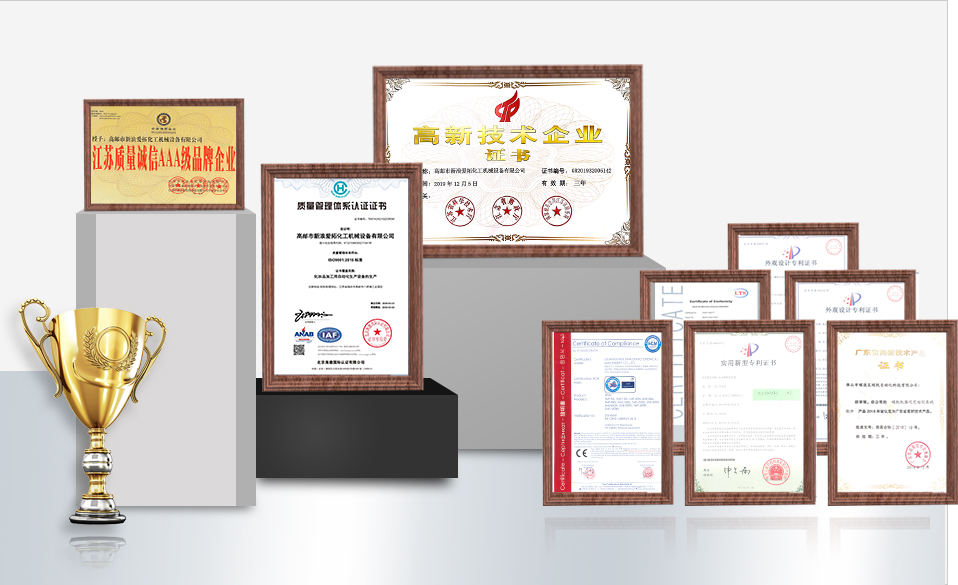 榮獲30余項(xiàng)實(shí)用新型和外觀專利證書(shū),乳化機(jī)/灌裝機(jī)等多款產(chǎn)品被認(rèn)定為高新技術(shù)產(chǎn)品